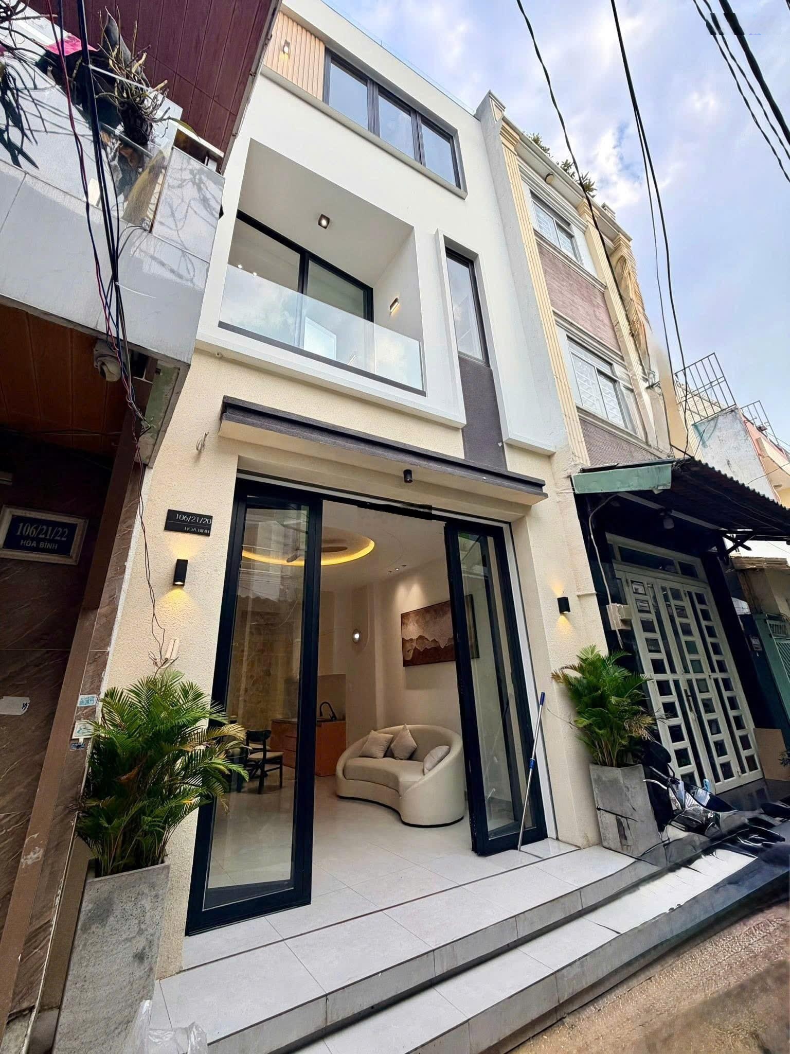 Bán nhà mới full nội thất 4 tầng cạnh Đầm Sen giáp Quận 11. + Diện tích 4,1m x 9m = 36m2. + Kết cấu 1 trệt + 3 lầu. + Full nội thất cao cấp, xách vali vào ở ngay. + Hẻm sạch đẹp, dân trí cao an ninh yên tĩnh. + Vị trí Ngay khu Đầm Sen, giáp Quận 11, kết nối nhanh Hòa Bình, Lũy Bán Bích, Âu Cơ, Trường Chinh... + Sổ hồng riêng hoàn công đầy đủ, sổ mới 2025. * Giá 6,05 tỷ thương lượng. Lh sdt e xem nhà nhé.