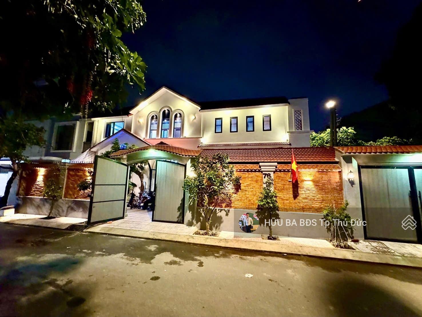 Ngay ngã tư Thủ Đức. Giá 17.8 tỷ giảm giá còn 13.8 tỷ. Bán biệt thự sân vườn + nghỉ dưỡng 2 MT, kiến trúc đẹp nhất khu vực. Diện tích đất: 374,1m2. DT: Đất ở 83,1m2 + đất trồng cây hàng năm khác 290,9m2). Diện tích nhà: 2 tầng 110m2 (full 2 sàn bê tông cốt thép + hệ vì kèo mái lợp ngói cao cấp). Công năng: Garage ô tô 7 chổ để được 2 chiếc, khách, bếp, 3PN, thờ, 2WC. Sân vườn rộng thênh thang, 2 hồ cá, khu trồng rau, cây ăn trái đầy đủ. Giá bán 13.8 tỷ thương lượng trực tiếp chủ nhà. LH: Mr Ba 0935457654 xem nhà xem sổ trực tiếp.