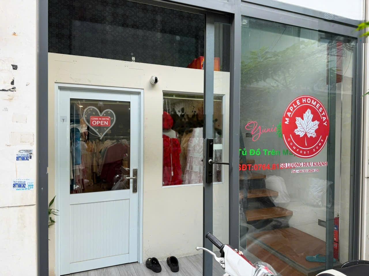 Mặt bằng diện tích 3x10 m. 5B Lương Hữu Khánh - Quận 1 Phù hợp shop thời trang, kinh doanh online, take away Đã lắp cửa riêng, sử dụng riêng, toilet riêng. Giá 7tr/tháng - Cọc 2 thanh toán 1 Hợp đồng 1-3 năm (Ở trên là homestay lối đi riêng)